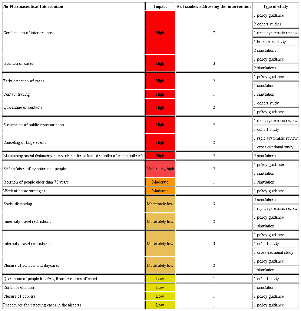 Antecedentes: Se requiere la mejor evidencia científica para diseñar intervenciones no farmacológicas efectivas para ayudar a los formuladores de políticas a contener COVID-19.