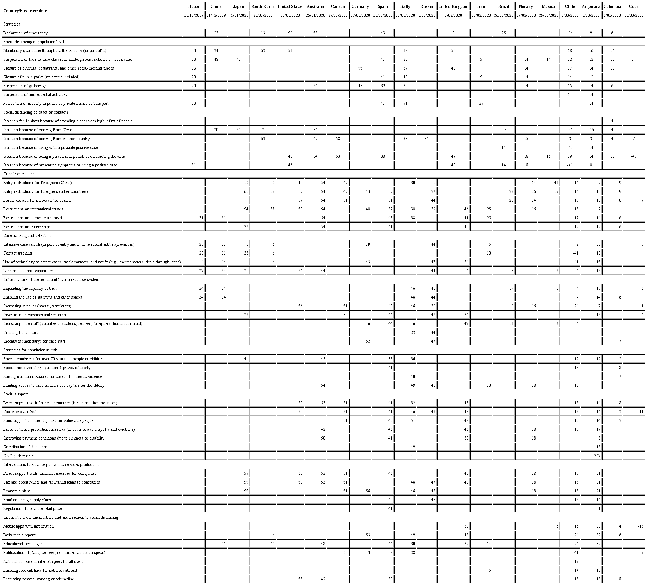 Note: The following official sources and other media were consulted between March 16 and March 27 to identify the actions and strategies defined by the countries.