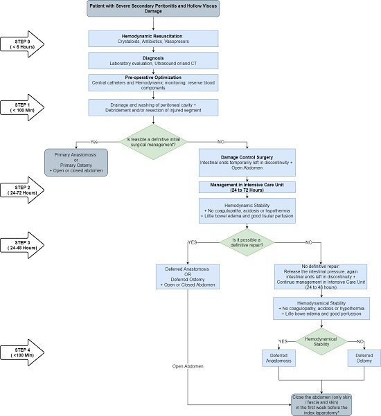 Ordoñez CA, Parra M, García A, Rodríguez F, Caicedo Y, Serna JJ, et al. Damage control surgery may be a safe option for severe non-trauma peritonitis management: proposal of a new decision-making algorithm. World J Surg. 2021;45:1043-52. Doi: 10.1007/s00268-020-05854-y.