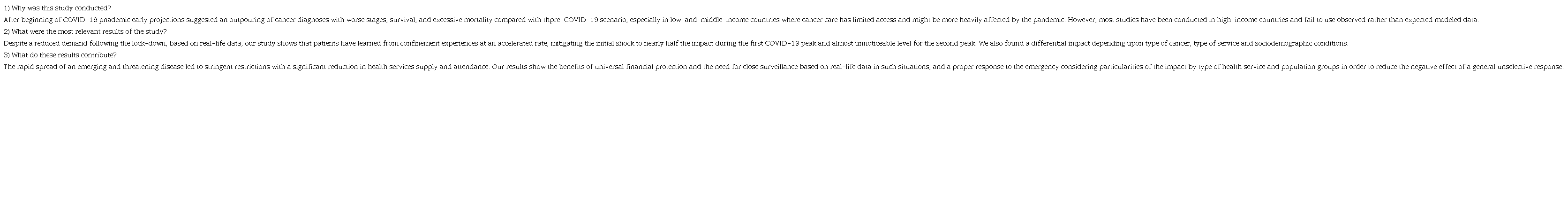 Conclusión: A pesar de no tener cambios en la oferta, el confinamiento indujo una reducción significativa en la demanda de servicios oncológicos con variación diferencial por tipo de cáncer, servicio y características demográficas de la población. Esto merece consideración especial para generar respuestas adecuadas a las emergencias sanitarias. La rápida recuperación de la demanda y la ausencia de caídas en olas de infección subsiguientes sugieren resiliencia de los pacientes e impacto menor del esperado en países con cobertura de salud universal.