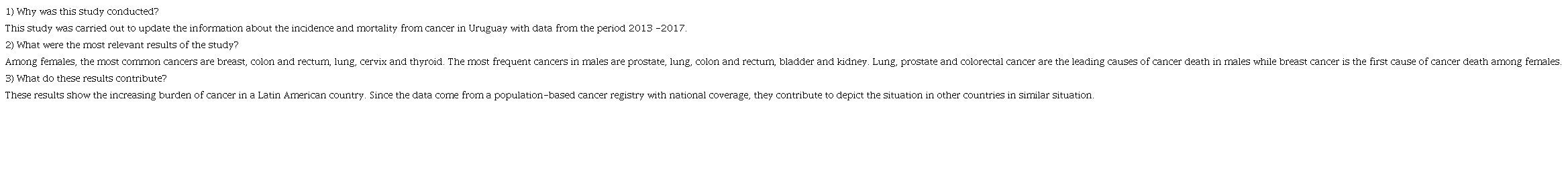 Keywords: Neoplasms+ Uruguay+ Incidence+ Mortality+ Registries+ cancer.