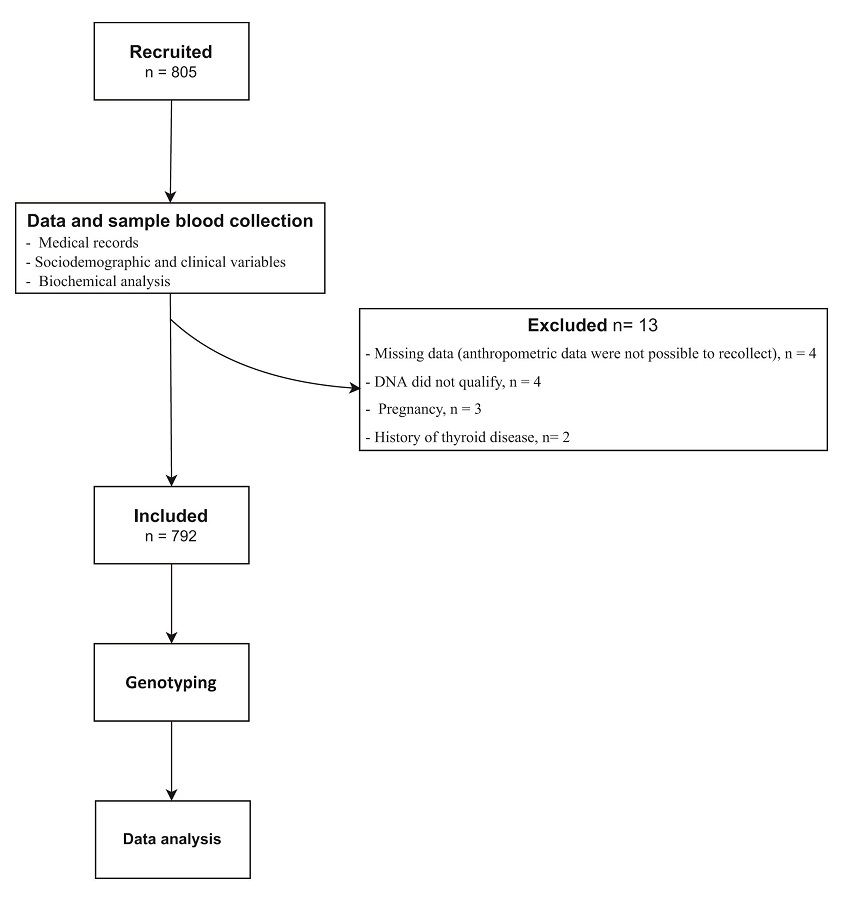 Participants were enrolled by trained medical staff in charge of performing an interview and physical examination focused on sociodemographic and clinical variables and the medical record of metabolic-related disorders (Figure 1).