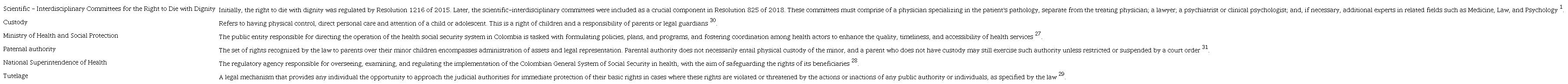Regarding the application of the resolution regulating the right to die with dignity for children and adolescents in the Colombian General Social Security and Health System, the participants in the deliberative dialogue agreed with the list of key actors outlined in Resolution 825 of 20186. They also emphasized the pressing need for further advancements on this issue for children and adolescents through legal precedents and regulations.