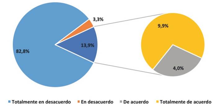 En cuanto a la existencia de los medios de transporte para los docentes en las escuelas rurales, los maestros muestran una gran insatisfacción por la falta de estos para llegar al centro escolar, destacando con un porcentaje elevadísimo del 85.6% (Figura 1).