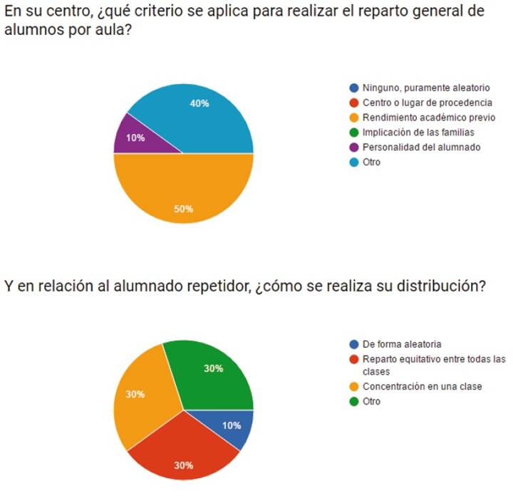 Las causas de esta situación guardan una clara relación, entre otros aspectos a considerar, con la forma de configurar las aulas: 50% de los entrevistados sostiene que el criterio para ocupar las clases de los diferentes cursos es el rendimiento académico, seguido de un extrañamente alto porcentaje de docentes que prefirieron no especificarlo o fueron demasiado laxos en su concreción para poder categorizar su respuesta (40%), y en último lugar, 10% basado en la personalidad del alumnado. La naturaleza de los datos obliga a reflexionar sobre esta pregunta, ya que parece claro que aquí se ha dado con un elemento sensible que exige probablemente un mayor desglose y circunloquio metodológico.