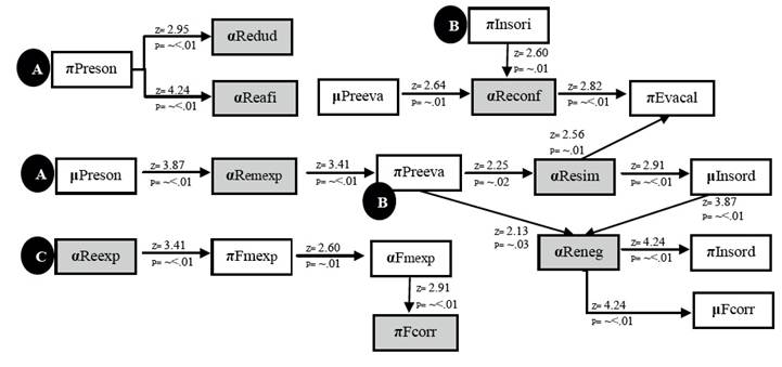 La información obtenida permitió observar los niveles probabilísticos Z y P, a partir de los cuales los flujos discursivos pudieron interpretarse al seleccionar los residuos ajustados y considerarlos excitatorios cuando promovían la aparición de una categoría (con un valor Z>1.96), o inhibitorios si la prevenían (Z<-1.96). Con la finalidad de cumplir el objetivo planteado en la presente investigación se dividieron en dos partes los resultados: en respuestas y preguntas realizadas por los alumnos. Posterior a cada explicación, se presentará un ejemplo típico de la secuencia así como una figura donde se muestre la manera en que se desarrollan los flujos secuenciales de discurso.