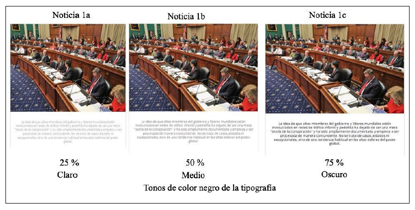 Nota. Ejemplo de presentación de estímulo. Cada tono de tipografía se presentó como una noticia individual, de manera aleatorizada.