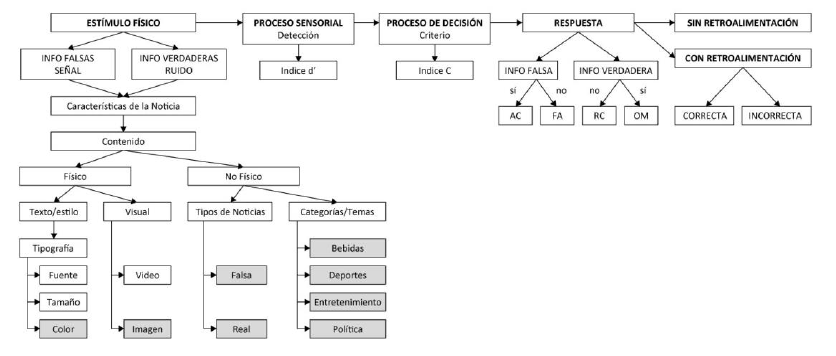 Nota. Basado en Green y Swets(1966) y en la caracterización de las noticias falsas por Zhang y Ghorbani, (2020). Las características analizadas en este estudio están resaltadas en color gris.