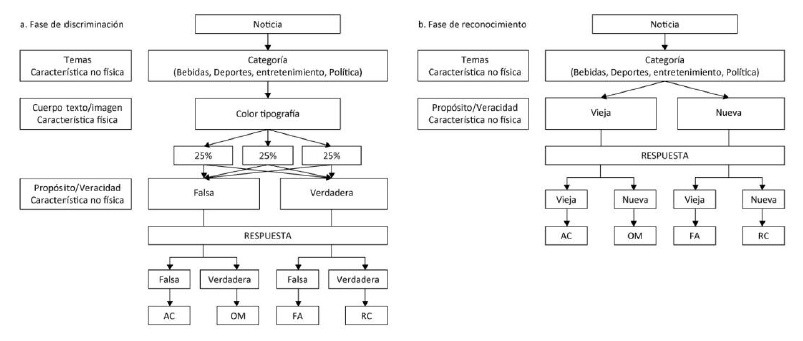 Nota. Diseño experimental a) Fase de discriminación, b) Fase de reconocimiento.