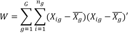 (1)Respecto a los criterios de agrupamiento, se destaca el método de Ward o método de la varianza mínima que se caracteriza por minimizar la variación de la varianza en la conformación de conglomerados, con buenos resultados en el nivel de homogeneidad de los grupos (Catena et al., 2003). El indicador W se mide mediante la suma de cuadrados de la ecuación 2, con Xig valor de la variable del individuo i en el grupo g,