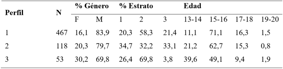 En la Tabla 3, se resumen las características de los perfiles riesgo suicida atendiendo a factores sociodemográficos.