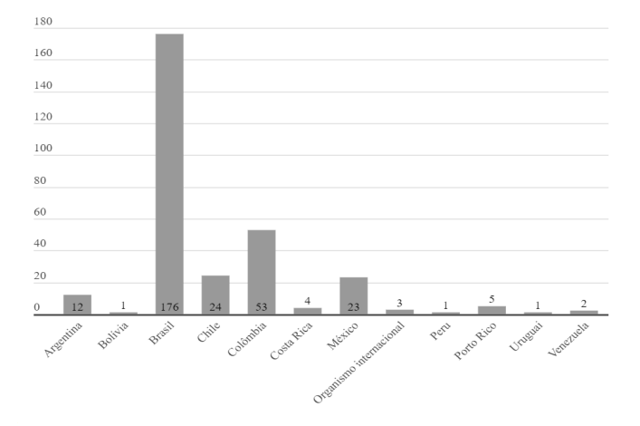 Se observó que, aunque la publicación en portugués no puede ser atribuida exclusivamente a autores brasileños, Brasil se destaca en esta producción en relación a otros países latinoamericanos. Aunque los eventos y números especiales antes mencionados cuentan con la participación de autores de diferentes países del continente (y del exterior), fueron más comúnmente organizados o coordinados por investigadores vinculados a instituciones de este país.