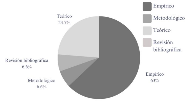 De manera más específica, al analizar los tipos de trabajo abordados en esta producción, otras evidencias contribuyen a la reflexión sobre la PA en la región. Como se muestra en la Figura 5, la mayoría de las publicaciones consistieron en informes de investigación empírica (N = 191/63%). A esta cifra se suman otros 20 artículos que presentan investigaciones empíricas específicamente enfocadas en el desarrollo, validación o propuesta de instrumentos, y comprobación de modelos teórico-metodológicos (6,6%). Prestando atención a los enfoques metodológicos utilizados en este conjunto de 211 artículos: 103 estudios fueron de carácter cuantitativo, 72 utilizaron métodos cualitativos y 36 utilizaron métodos mixtos.