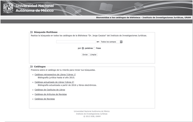 Se optó por la segunda, considerando que sería un trabajo a mediano plazo, pero que redundaría en beneficio de todo el sistema bibliotecario de la UNAM, ya que esto conllevaría a la visibilidad de todas las obras de la Biblioteca “Dr. Jorge Carpizo”, la cual cuenta con ejemplares únicos especializados en materia jurídica.