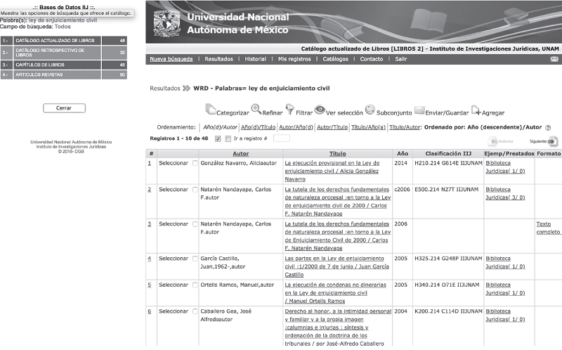 Abstract: This paper describes the process implemented in 2015 for the adoption of the aleph system in the databases of the collections of the “Dr. Jorge Carpizo” Library of the Institute of Legal Research (IIJ) of the National Autonomous University of Mexico (UNAM), a pioneer institution in law research in Mexico and worldwide. First, some data of the Library are presented, then the steps undertaken to implement the application of the aforementioned system are described, in order to be fully integrated into the UNAM Library System. Afterwards, the problems faced by this Library and how they were solved are detailed. Finally, some perspectives and conclusions are presented of this process.