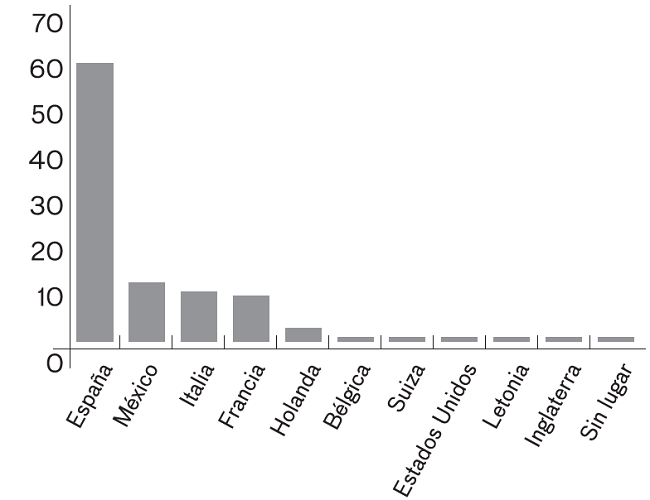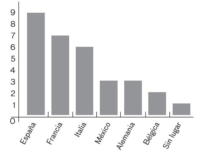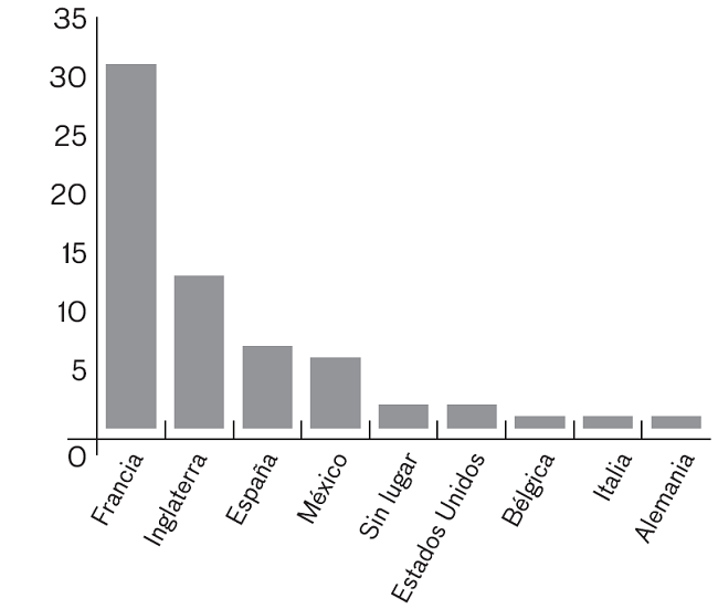 De los libros que tenemos publicados entre 1801 a 1821, el 49% de los materiales fue impreso en Francia, el 19% en Inglaterra, el 11% en España y el 10% en México.