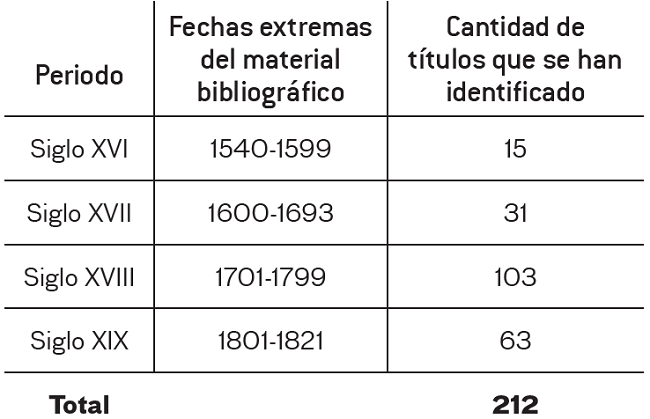 - Libros manuscritos e impresos elaborados durante los siglos XVI, XVII y hasta 1821.