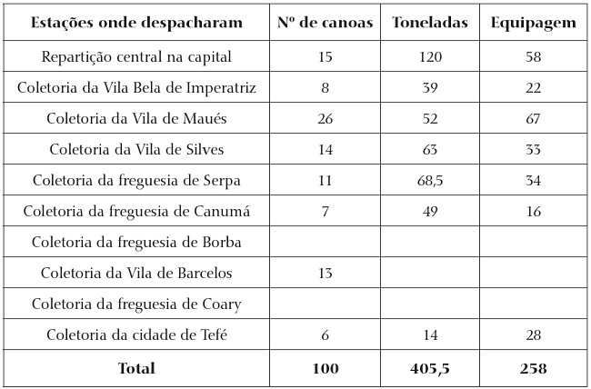 Note-se que havia, então, um total de 100 canoas de regatões apenas na província do Amazonas. Estes dados referem-se às canoas registradas pelas autoridades, sendo que o número efetivo delas poderia ser bem maior, em função das estratégias utilizadas pelos comerciantes para enganar a fiscalização como, por exemplo, obter autorização para uma canoa e usá-la para várias utilizadas no mesmo serviço.