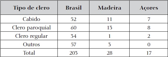 Em qualquer dos territórios estudados, das ordens religiosas saiu um número pequeno de agentes. Apesar de tudo, era no vasto Brasil que tinham maior presença no cargo, se se considerar que a maioria dos padres jesuítas que atuaram nos Açores não estava formalmente encartada.8
