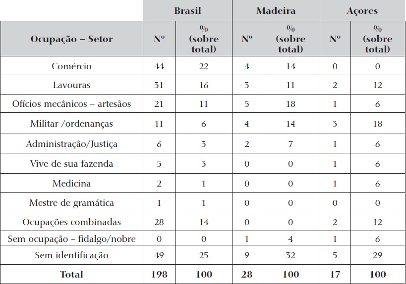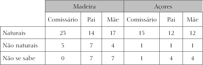 Nas ilhas do Atlântico norte português, o quadro era diferente (ver Tabela 3). A maioria dos comissários nascera no arquipélago respectivo, bem como os seus pais e avós. Assim, no espaço insular, esta observação aproximava-se mais da registada nas capitanias mais antigas do Brasil, como era o caso da Bahia.