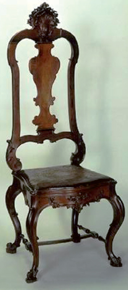Ao nos debruçarmos sobre os inventários das décadas de 1730 a 1790 à procura de cadeiras, nos deparamos com pouquíssimas peças, mesmo entre os proprietários mais abastados. Para o grupo dos não comerciantes, encontramos menção a cadeiras apenas em dois processos. No inventário de Manuel de Gois Cardoso e de sua mulher Isabel de Almeida, moradores no bairro de Santa Ana, aberto em 1744, temos seis cadeiras, tão somente descritas como “de pau”, provavelmente colocadas à volta da mesa de sete palmos que as precede na avaliação dos bens. E no testamento de José de Gois e Morais, datado de 1735, igual e parcamente descritas, temos “seis cadeiras de bom uso”.