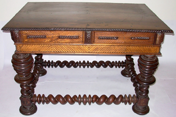 Comecemos pelo número de gavetas do móvel e a matéria-prima utilizada em sua estrutura. Se as gavetas eram comuns em bancas e mesas, em geral limitadas a duas unidades, como também era corrente em bufetes espalhados nos interiores domésticos paulistas, as peças descritas nos inventários dos abastados negociantes Gaspar de Matos, Manoel José da Cunha, André Álvares de Castro, Manoel Mendes de Almeida, Maria Francisca Lustosa - filha de João Francisco Lustosa -, José da Silva Ferrão, Manoel Soares de Carvalho e Francisco Pereira Mendes contavam com gavetas em número de quatro, o que indica serem móveis apropriados ao centro dos aposentos, lugar favorável a sua leitura total, já que decorados em todas as faces.