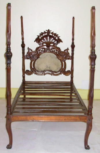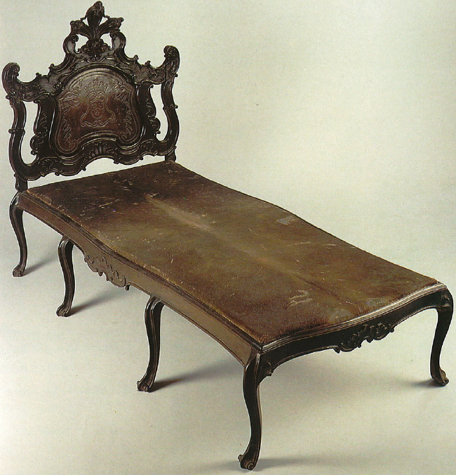 Quanto aos leitos, os valores a eles atribuídos estavam relacionados não só aos trabalhos de torno e de entalhe empregados, mas também - e, sobretudo - a suas procedências - Bahia, Rio de Janeiro e, até mesmo, França, como o “leito francês de vinhático quase novo”, mencionado no inventário do mercador João Rodrigues Vaz, aberto em 1746. Esse padrão diferenciador dos objetos pela sua proveniência era um elemento fortemente marcado nos inventários dos comerciantes, que eram os maiores possuidores de móveis de repouso com madeira de jacarandá da Bahia, padrão que se repete, como já visto, para outras tipologias de mobiliário.