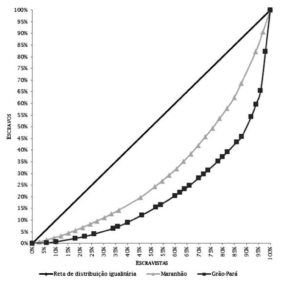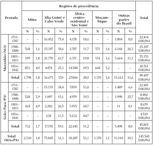 Nada obstante ao fato de as formações econômicas articuladas do Maranhão e do Grão-Pará terem certamente criado condições favoráveis para a existência de características comuns nestas regiões, como as que explicitamos no decorrer do texto, os distintos graus de dinamismo econômico alcançados por essas regiões e os distintos fluxos de escravos a elas direcionados, sobretudo no período posterior ao monopólio da Companhia Geral de Comércio do Grão-Pará e Maranhão - com o Maranhão se sobressaindo, em ambos os casos, em relação ao Pará -, foram determinantes no sentido de conceber diferenças o mais das vezes bem demarcadas entre os padrões de distribuição da propriedade escrava, o grau de concentração da posse e, outrossim, as características dos escravos nessas regiões.