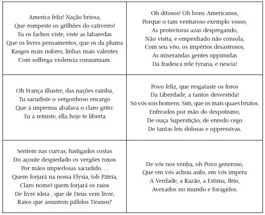 Não são os principios Maçonicos os germes desta Revolução. Concedamos por hum pouco que assim seja. (a) Mas entretanto o que eu observo hé que homens assignalados, pela Impiedade, e Rebelião são os que mais se destinguem no zello Maçonico: o que eu observo hé que as liçoens de Mirabeau, de Diderot, de Freret, de Helvetins [sic], de Bolinbrochio, do Marquez de Argens, de Dupuiz, de Volney (b), e de hum sem numero desta estofa fazem a seo gosto, e estudo favorito; e famaliarizados [sic] os Maçons co os destes principios que se pode esperar delles. [A Bibliotheca Maçonica Portugueza compoem-se particulatmente destes escriptos].38