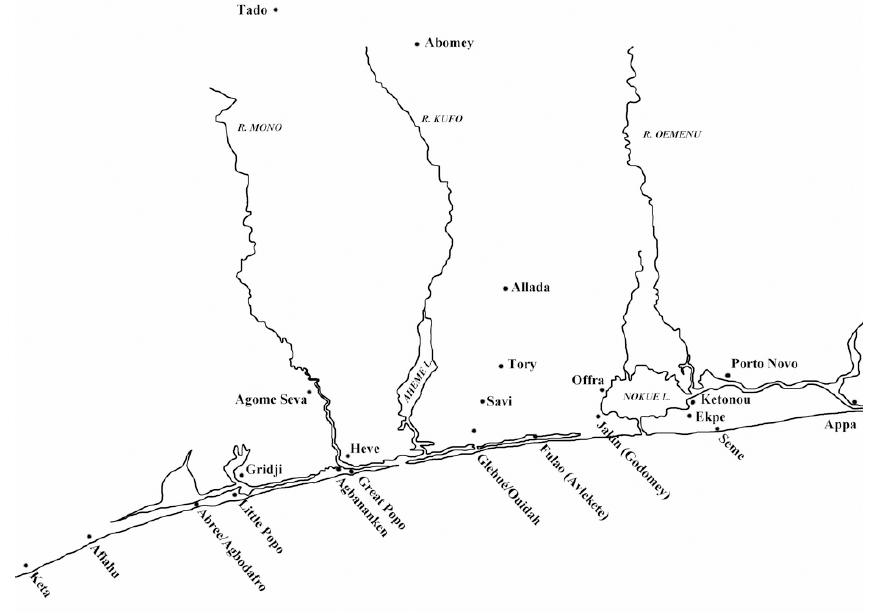 Note-se que Porto Novo não era nem mesmo mencionado nas fontes oficiais portuguesas até meados do século XVIII. No entanto, a partir de segunda metade dos anos 1750, ele passaria a desempenhar um papel estratégico nesse negócio. Porém, antes de examinar a presença portuguesa, algumas palavras são necessárias sobre o contexto africano que permitiu o desenvolvimento do tráfico naquele entreposto negreiro.