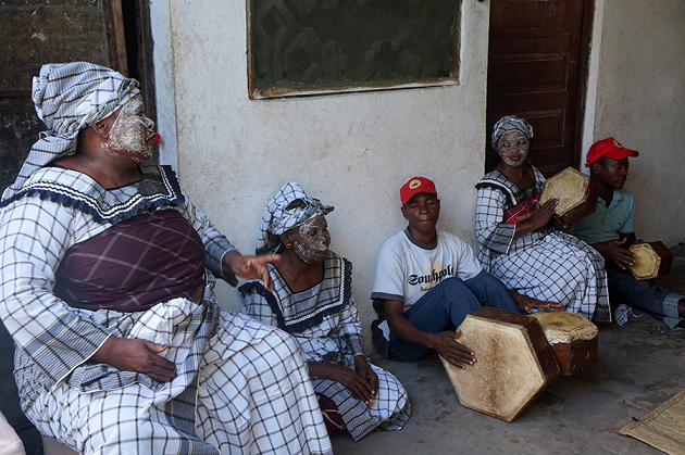 Chama a atenção igualmente o fato dos instrumentos serem tocados por mulheres, com destaque para o comando da prática pela mais velha do grupo. Este detalhe nos remete à importância das mulheres, sobretudo das mais velhas, as chamadas apwya ou pia-mwene, nos momentos ritualísticos destas sociedades matrilineares, nos quais estes instrumentos têm uma função fundamental, e às formas de organização em torno das relações de gênero, parentesco e controle da terra.