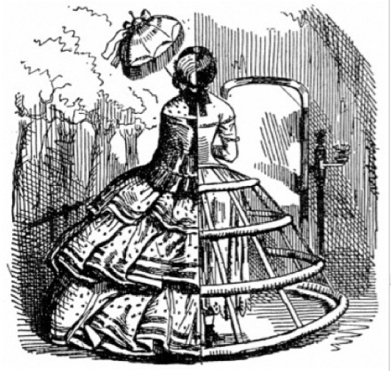 No final de década de 1850 e começo da década de 1860, as crinolinas começaram a se tornar mais baratas e, portanto, acessíveis a mulheres de classe média e algumas operárias e criadas. Assim que a moda da crinolina se tornou mais acessível, revistas inglesas como a Punch tornaram essas mulheres alvo de piadas e críticas sociais - a crinolina, portanto, saía de moda e era substituída pelas anquinhas na parte de trás do vestido.69 Dessa forma, ao se tornar popular, a crinolina não servia mais como distintivo de classe social e foi substituída, já estabelecendo um padrão clássico de funcionamento da moda.70