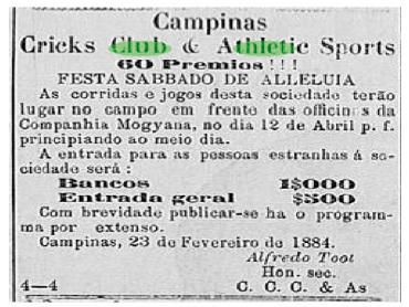 Há que se considerar algumas especificidades desse evento. Uma delas é o fato do anúncio, ao contrário dos anteriores veiculados em inglês, ter sido publicado em português, um sinal de que existia algum interesse em ampliar os envolvidos. A propósito, a agremiação fluminense anunciada, o Anglo Brazilian Cricket Club, contava com lusófonos como membros e dirigentes (brasileiros e portugueses), não só britânicos, como era usual na ocasião (MELO, 2017a).44
