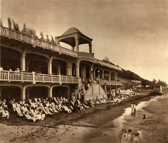 No século XIX, muitas partes da orla marítima do Atlântico deixaram de ser um “território do vazio” para se tornarem - enquanto espaço social construído - praias balneárias.34 Moles, cassinos, hotéis, belvederes, casas de banhos e outros equipamentos transformavam algumas praias em balneários atraentes para um público que descobria o desejo de beira-mar. Mais do que os terapêuticos banhos de mar, tal desejo estava associado às propriedades benfazejas atribuídas ao ar puro. Respirá-lo era uma forma de purificação, além de ser tonificante e revigorante.