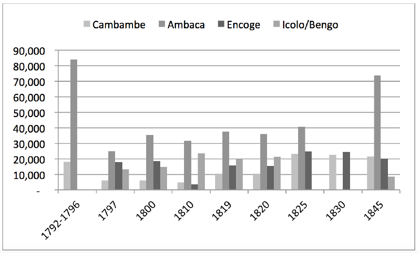 Em síntese, o que as contagens gerais mostram é uma redução severa entre 1777 e 1819, seguida de uma pequena recuperação na década de 1840, para finalmente haver um forte crescimento nos anos que se seguiram ao final do tráfico atlântico. Esta tendência parece encontrar respaldo nas alfândegas de Luanda, pois no período entre 1793 e 1819 exportou-se uma média de 20 mil escravos por ano, enquanto que, entre 1710 e 1792, foi deportada uma média de 12 mil indivíduos anuais. Depois de 1831, desaparecem os números oficiais, mas o abolicionismo teve algum impacto sobre o tráfico na região, concentrando o negócio nas mãos de grandes contrabandistas, deslocando as exportações para os portos ao norte de Luanda e, talvez, reduzindo a pressão do comércio de pessoas sobre as populações do Reino de Angola, o que explicaria a recuperação populacional na década de 1840.45