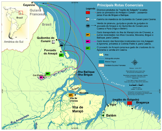 Durante mais de dois séculos, uma vasta região, abrangendo desde o rio Oiapoque até as proximidades da foz do Amazonas, esteve em disputa entre França e Portugal, e, depois da Independência, entre franceses e brasileiros. Enquanto território de fronteira, essa área sempre fora palco de diferentes fluxos, principalmente entre a Guiana Francesa e o atual estado do Pará (MARIN; GOMES, 2003; COSTA, 2018). Contudo, ao longo do século XIX, essa mesma região notabilizou-se pela formação de comunidades politicamente autônomas, constituídas em sua maioria por escravos fugidos, desertores e demais pessoas que buscavam escapar de diversas formas de exploração da sua mão de obra.