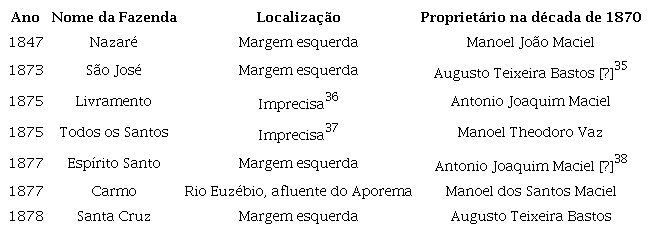 Porém, cruzando a lista feita por Barão do Rio Branco com informações presentes em correspondências e relatórios, podemos dizer que o maior criador de gado bovino da região contestada, entre as décadas de 1850 e 1870, estava no rio Aporema. Tratava-se de Manoel João Maciel, dono da fazenda Nazaré. Em maio de 1860, o capitão José da Costa Azevedo, responsável por estudos hidrográficos e cartográficos na área litigiosa, informava que Maciel tinha iniciado sua fazenda com apenas cinquenta bois, trazidos de Macapá. Em dez anos, o fazendeiro conseguira aumentar seu rebanho para novecentas cabeças de gado.33