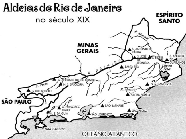 O interior da Capitania do Rio de Janeiro foi palco de um processo complexo e singular na virada do século XVIII e início do século XIX. Assistiu-se à apropriação de terras nos aldeamentos coloniais antigos (caso de Itaguaí e Mangaratiba), ao mesmo tempo em que se fundavam novos “aldeamentos tardios” para fins de pacificação (caso de Valença). Estes aldeamentos surgiam em concomitância com as “guerras justas” contra tribos que dificultavam a colonização e não aceitavam o descimento (caso dos índios Botocudos). Ou seja, era entre a brandura e a violência que se desenrolava a política indigenista do século XIX (ALVEAL, 2002; AMADO, 2015; CUNHA, 2012; SAMPAIO, 2012; SILVA, 2017; ALMEIDA, 2008a; 2013).