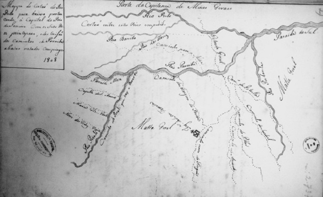 Acreditamos que a diminuição das correrias indígenas teve relação direta com a nova dinâmica dos sertões. Muitos caminhos começaram a ser abertos, principalmente com a atuação do Capitão Ignácio de Souza Werneck que, em 9 de março de 1808, apresentou um relatório constando um mapa descrevendo as novas rotas criadas nos sertões.28 Notamos a abertura de vários caminhos no antigo sertão dos “índios bravios”, com destaque para o “Caminho para a Aldeia”, que interligava o aldeamento de Nossa Senhora da Glória com a aldeia dos Ariris, em Rio Bonito (atual Conservatória), mas também com a Estrada Geral para Minas, que seguia em direção à cidade do Rio de Janeiro (PEDROZA, 2018, p. 423-425). O sertão estava mudando e os índios estavam percebendo isso.