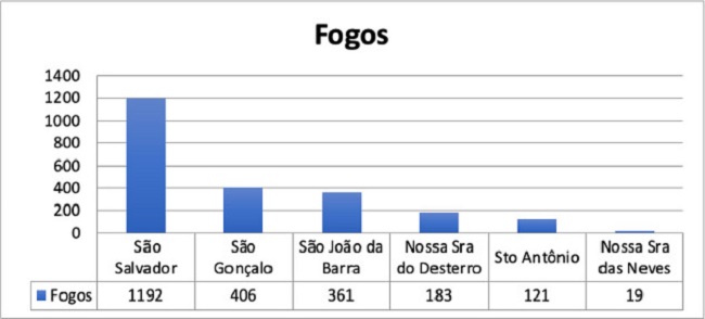 O gráfico acima, elaborado a partir dos dados apresentados por José Caetano Barcelos, estabelece a média de indivíduos para cada fogo, por freguesia34.