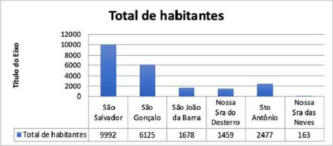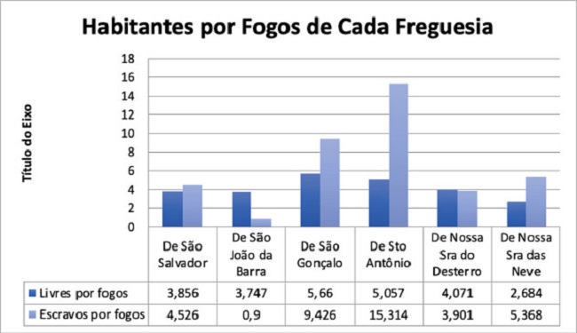 O exame pautado apenas nos dados relativos aos fogos, porém, não é suficiente para compreender a ocupação dessas terras, pois a freguesia de Santo Antônio ganha novos contornos quando observados os totais populacionais. Como podemos verificar, ela salta do quinto para o terceiro lugar em números de população total, ficando atrás, respectivamente, das duas freguesias que apresentavam os números mais expressivos de fogos, São Salvador (a capital) e São Gonçalo, onde se localizavam três das quatro grandes fazendas da região.