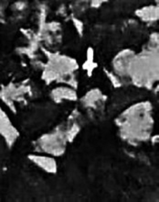 A cruz branca quer revelar e marcar a presença, em meio à distinta audiência, de um assassino frio e cruel, que, em poucos instantes, iria praticar um crime terrível. Feito para mostrar todos os presentes, o retrato capturou apenas a testa e parte do rosto do suposto criminoso. Por isso, precisamos acreditar que a pessoa caprichosamente escondida atrás do grande chapéu escuro é o escritor e deputado federal recém-eleito Gilberto Amado. Ao final do evento, ele disparou, por seguidas vezes, sua pistola Mauser contra o poeta Annibal Theophilo. O crime aconteceu próximo ao saguão de entrada do luxuoso prédio do Jornal do Commercio, onde o poeta agonizou, vindo a falecer pouco depois.