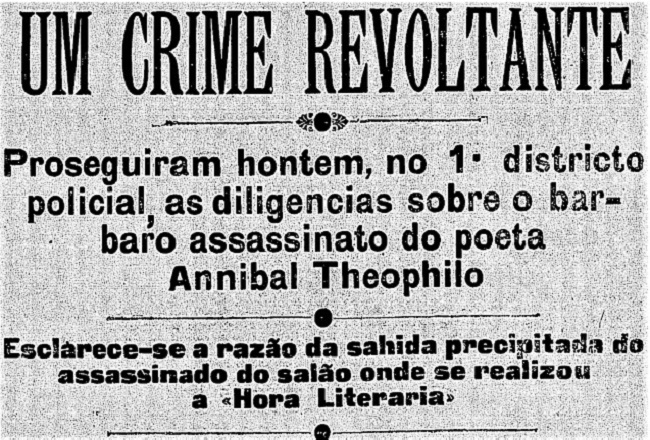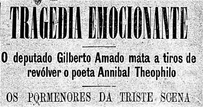 Um conjunto relativamente seguro de certezas, por outro lado, suporta o episódio e ajuda a dar forma a um problema histórico peculiarmente saboroso. Reunidos no prédio novo do Jornal do Commercio, um dos mais prestigiados palcos dos escritores na recém-remodelada capital da República, em uma festa organizada por literatos para divulgar e financiar sua recém-criada associação de classe, aquele desfecho parece, no mínimo, improvável. Afinal, trata-se de um crime público, ocorrido em plena luz do dia, diante da fina flor da sociedade fluminense. Surpreende, ademais, por envolver duas proeminentes figuras do prestigiado mundo das letras, ambos sócios fundadores da sociedade literária promotora do evento. Nesse sentido, não somente o crime causa estranheza a um observador do século XXI; também intriga o lugar e a forma como ele aconteceu. Afinal, não resta dúvida a respeito da autoria e é inequívoco que o crime vitimou, além de Annibal Theophilo, a classe dos homens de letras. Ao alvejar o poeta, Amado atingiu também a imagem pública dos escritores. Não por acaso, nos dias seguintes ao assassinato, Gilberto Amado foi impiedosamente atacado, suas credenciais de literato foram postas em questão. Annibal Theophilo, por sua vez, foi lembrado com saudade, homenageado pelos amigos como um “perfeito tipo de cavaleiro”, sendo a “modéstia e a generosidade” duas das mais “notáveis virtudes que o distinguiam”8.