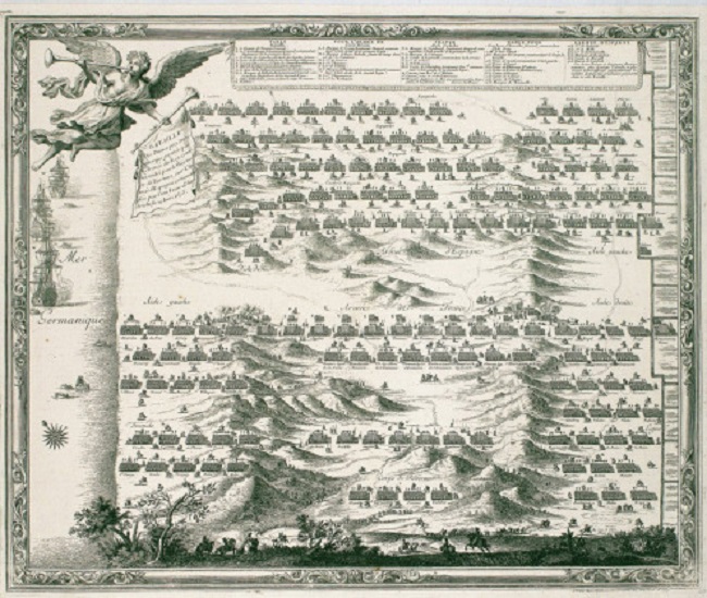 O curto-circuito da lógica de reconhecimento, em suas implicações morais e teológico-políticas, serve de estopim para as hostilidades narradas por Furetière. Tudo teria começado de forma bastante singela, desencadeando uma tempestade a que Retórica com muito custo sobreviveu. Em sua reforma das milícias do reino, o ministro Bom Senso dispensou as tropas de Équivoques; conhecidas por sua “licenciosidade”, traziam troubles ao Estado e revestiam-se de duplicidade, “pois diziam uma coisa e faziam outra”38 (FURETIÈRE, 1658, p. 6). Desempregadas, teriam achado socorro na região do Pedantismo, cuja metrópole era o Ginásio (isto é, os Collèges), onde impera a confusão que reflete o episódio babélico, à “exceção de uns poucos cantões, que se preservaram da corrupção geral”39 (FURETIÈRE, 1658, p. 7).