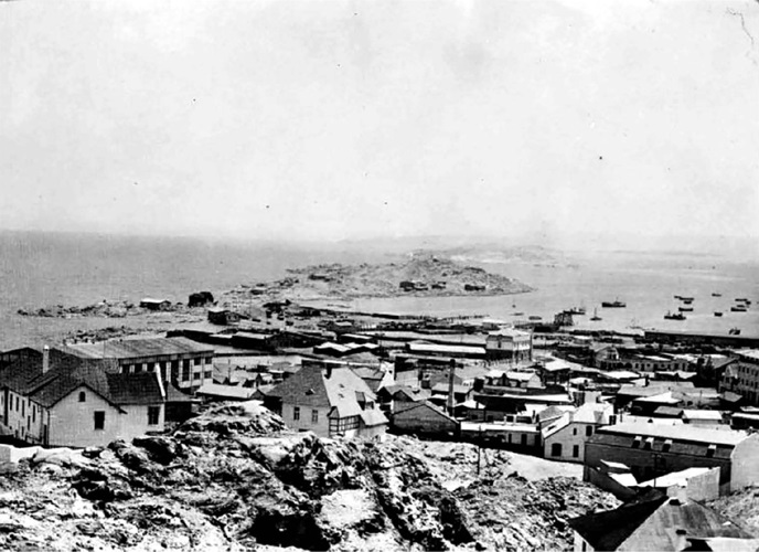 Se, em um primeiro momento, afirmei que uma das funções das fotografias da Sociedade Colonial Alemã era de alguma forma “provar” que a) os territórios coloniais ofereciam matérias-primas de primeira necessidade para a indústria alemã e b) que os espaços coloniais eram vazios de presença humana e, portanto, estariam aptos para o processo de colonização, verifico agora também a existência de um outro tipo de discurso a partir das fotografias de paisagens produzidas por essa instituição. Nessa segunda categoria, estão as fotografias que representam as transformações dos espaços coloniais com a presença dos colonizadores; observo aqui imagens que revelam os espaços urbanizados das possessões coloniais alemãs, vale dizer, aqueles espaços que foram alterados pela administração e pelo pretenso projeto de civilização e modernização levado a cabo pelos agentes coloniais.