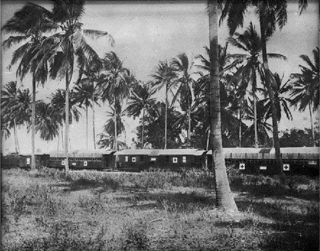 A partir desse eixo temático e da conjuntura apresentada, a figura 12 denota uma imagem que busca representar o auge do processo civilizacional que os europeus acreditavam estar levando às suas colônias em ultramar. Vemos nessa fotografia um transporte sanitário que corre por entre as planícies e as palmeiras da África Oriental Alemã, simbolizando, de uma só vez, a presença da Medicina Ocidental na África colonial junto com a potência do transporte a vapor, símbolo por excelência da modernidade tecnológica na virada do século XIX para o XX. É nítido que o enquadramento dado a essa imagem buscava dar destaque aos “benefícios” que a presença alemã havia trazido para o continente africano, vale dizer, por meio de uma lógica positivista que entendia o processo de colonização como um passo necessário a ser dado para que os povos africanos pudessem alcançar o último estágio do desenvolvimento social (o estágio da civilização europeia). O transporte sanitário retratado nessa fotografia apresentava dois avanços alcançados no território graças à interferência alemã na região como parte da sua malograda “ajuda humanitária” para este local e seus habitantes. Dessa forma, novamente reiteramos o fato de que cada grupo social decide o que é digno de ser fotografado ou, segundo Bourdieu, aquilo que deve ser fixado, conservado e mostrado (BOURDIEU, 2017, p. 86).