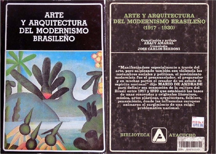 Aracy Amaral, que atuou em várias dessas frentes, foi convidada a selecionar os textos dos modernistas contidos na obra e a elaborar o prólogo que contava a história do movimento brasileiro, com a participação de umas das mais respeitadas críticas de arte latino-americana naquele momento, a intelectual argentina Marta Traba, a qual foi conferida a importante tarefa de tradução do volume. O livro coloca o modernismo brasileiro entre as temáticas escolhidas para fazer parte da coleção, no caso a da Biblioteca Ayacucho. Nos primeiros volumes desta coleção, explicita-se que havia ali a pretensão em “recolher as mais importantes obras da criação e do pensamento latino-americanos, desde sua origem até o presente, cuidadas, prologadas e anotadas por especialistas de reconhecida competência em seus respectivos gêneros” (ApudDEMENECH, 2016, p. 96). Com Arte y arquitectura del modernismo brasileño (1917-1930) o modernismo brasileiro foi alçado ao plano internacional, dando mais um passo na construção deste polo cultural moderno e também na tentativa de aproximar o Brasil da América Latina por meio das ar tes e da cultura. Nesse sentido, a construção desta obra, além de aglutinar intelectuais e leitores em torno de um projeto sobre a história da América Latina, também pretendeu entregar ao leitor tudo o que há de fundamental sobre o tema proposto, neste caso o modernismo brasileiro.