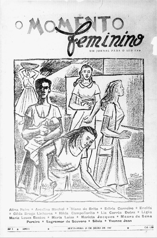 Sexta-feira, 25 de julho de 1947. Saía nas bancas a primeira edição do semanário Momento Feminino: um jornal para o seu lar, “fundado, dirigido e redigido por mulheres” (JEAN, 1947, p. 11), editado no Rio de Janeiro e impresso pela tipografia Imprensa Popular, que pertencia ao então Partido Comunista do Brasil (PCB). O subtítulo parecia indicar que um novo periódico da chamada “imprensa feminina” ganhava as ruas.