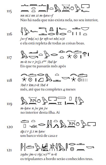 CANHÃO, Telo. Conto do náufrago: um olhar sobre o Império Médio egípcio. Análise histórico-filológica. Lisboa: Centro de História da Faculdade de Letras da Universidade de Lisboa, 2012. Disponível em: https://repositorio.ul.pt/handle/10451/45976. Acesso em: 29 dez. 2021.