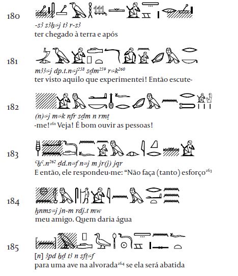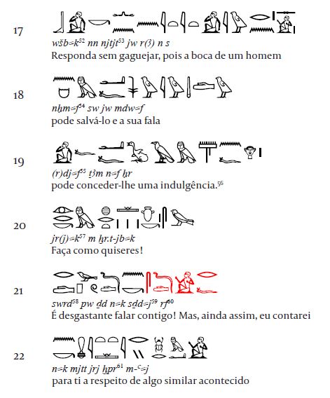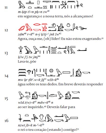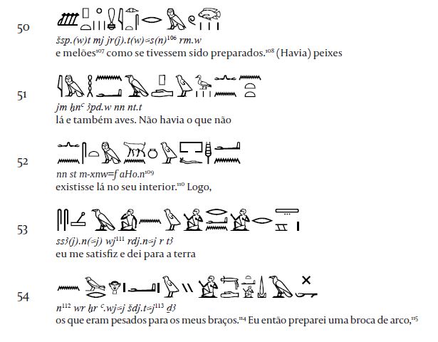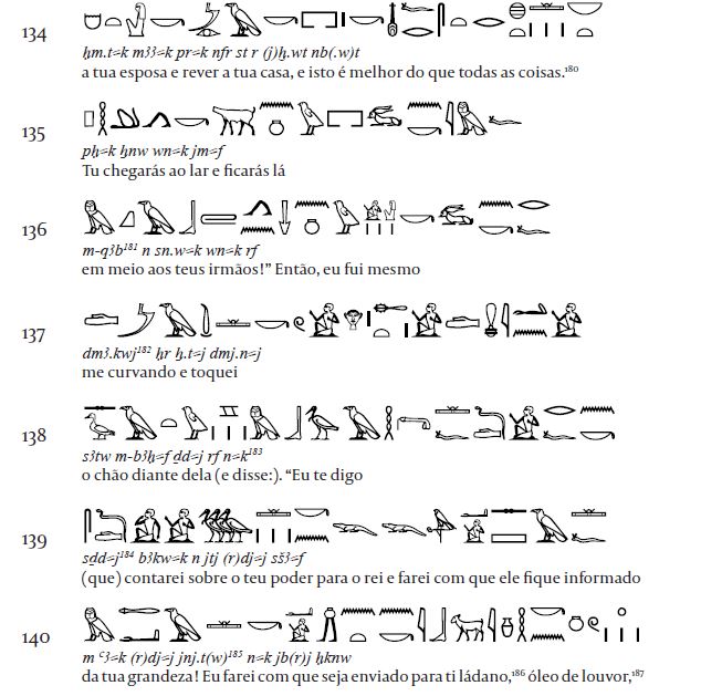 Este trabalho pretende ampliar o alcance das contribuições lusófonas sobre o tema. Apresenta-se aqui o texto original transcrito para a escrita hieroglífica e uma tradução comentada, do ponto de vista gramatical e estrutural da língua, junto ao debate em torno da interpretação de determinadas passagens. Espera-se que esta versão se torne uma ferramenta para estudantes e professores de egípcio médio em português e promova mais acesso ao seu conhecimento.